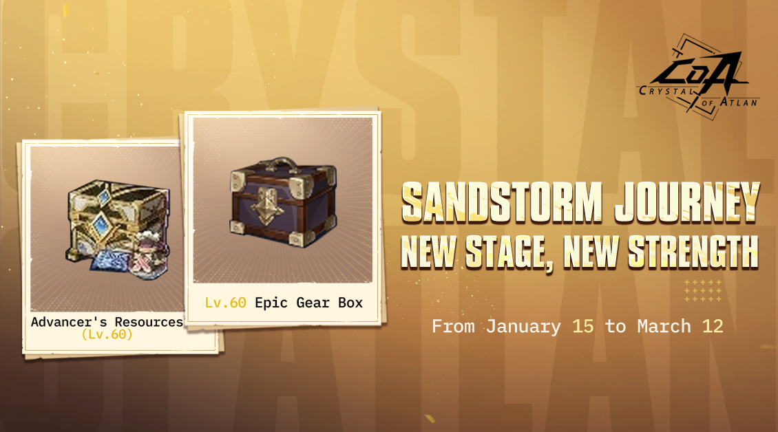 《Crystal of Atlan》Lv.70 大型更新「沙暴之旅」现已上线!等级上限提升至 70,开启阿特兰全新篇章!冒险者将揭开「浮空聚落」的秘密,并挑战全新的协作副本「暮羽巢穴」。本次更新还加入了全新的刻印系统与师徒系统,并推出华丽的「誓约苍晶」苍晶时装套装,同时带来多项 TikTok 活动。立即加入《Crystal of Atlan》,展开全新的冒险旅程吧!【立即下載】